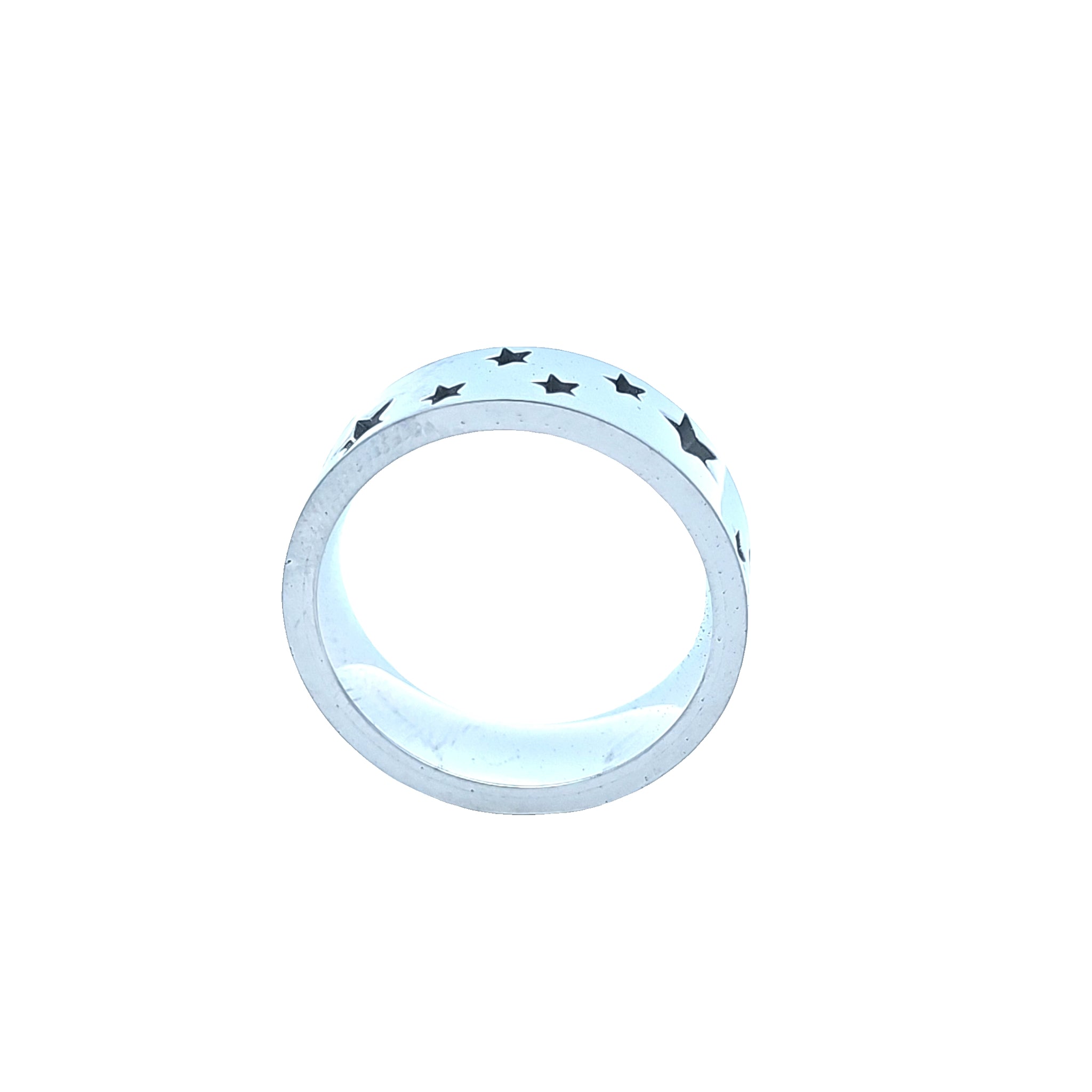 The blank stainless steel star ring is ready for the inlay of your custom materials. The ring is 8mm wide and has staggered 3mm and 5mm stars. The qty of stars will very due to the size. The channel depth of the stars is .7mm.